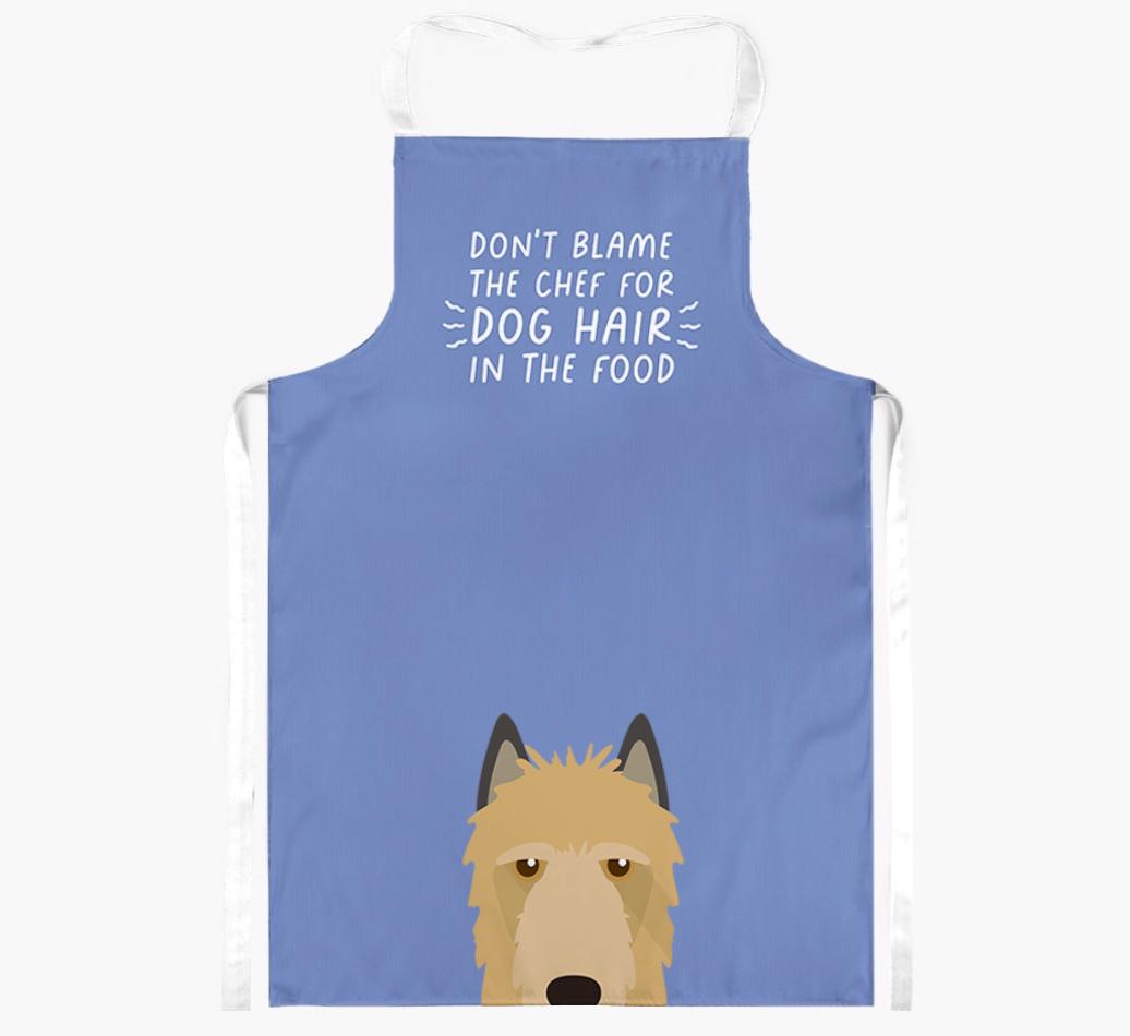 This funny apron will warn friends and family not to blame the chef for dog hairs in their food, they have Belgian Laekenois to thank for that!