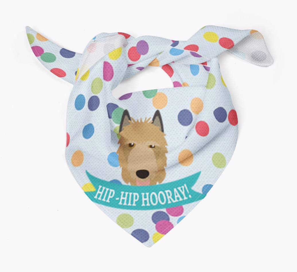 Featuring our famous Laekenois icon and the words ‘hip-hip hooray!’ printed upon a colorful confetti background, Your Belgian Shepherd is sure to look pawty ready wearing this bandana.