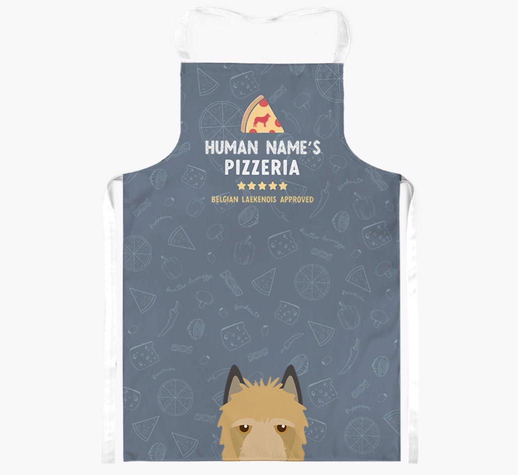 Featuring your furry friend's icon and lick of approval, plus your chosen human name, this apron is pawfect for anyone who considers themselves a pizza maestro in the kitchen. Available in a choice of 5 rustic colors, it'll make any Laekenois lover happy.