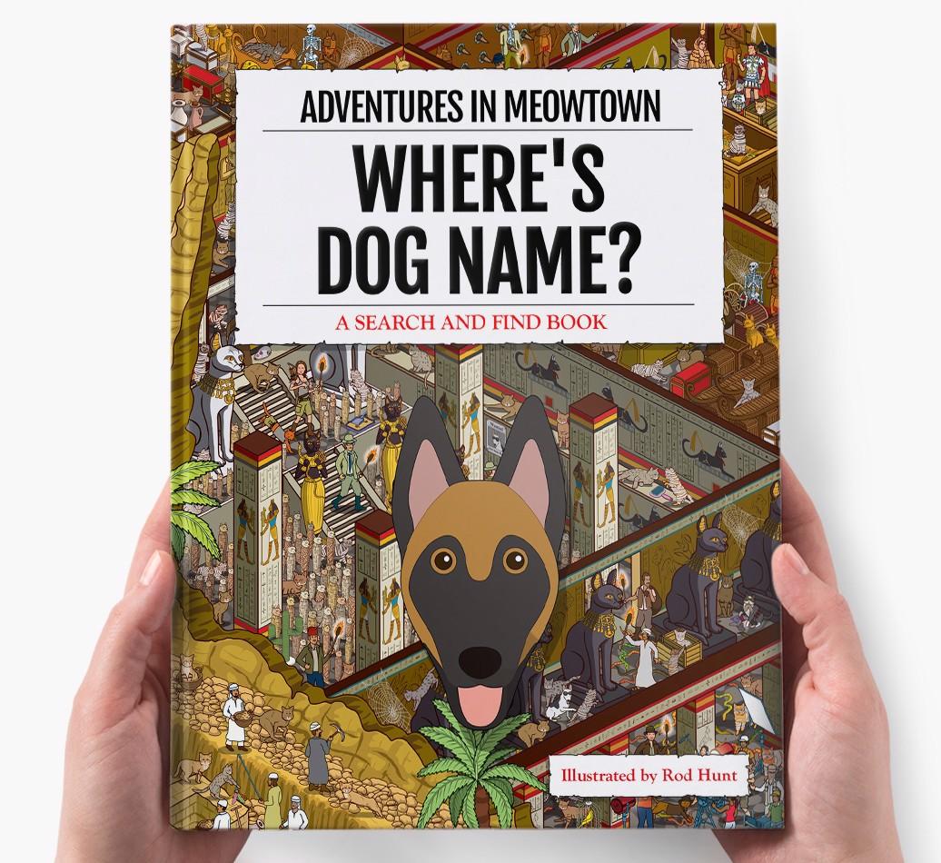 Get ready to unleash your inner detective with our popular Search & Find book, ‘Where’s (insert dog name)?’ It’s the personalized dog book everyone’s yapping about! With twelve beautifully illustrated locations to explore, we challenge you to find your adventurous {breedShortName} on each action-packed page. Can you spot all the canine cameos and funny parodies too?