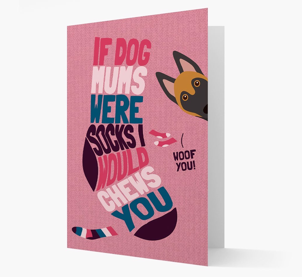 This comical card is pawfect for the Dog Mom who's pawrent to a sock-loving Malinois.