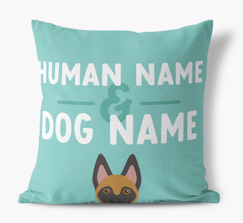 Human And Pet Name: Personalized Belgian Malinois Canvas Pillow