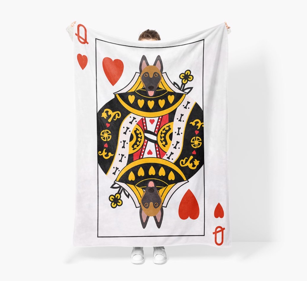 'Queen of Hearts' - Personalized Belgian Malinois Blanket: Premium Sherpa Fleece