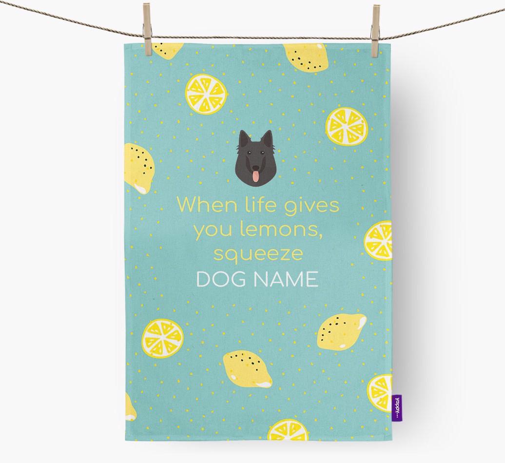 'When Life Gives You Lemons' - Personalized Belgian Shepherd Dish Towel