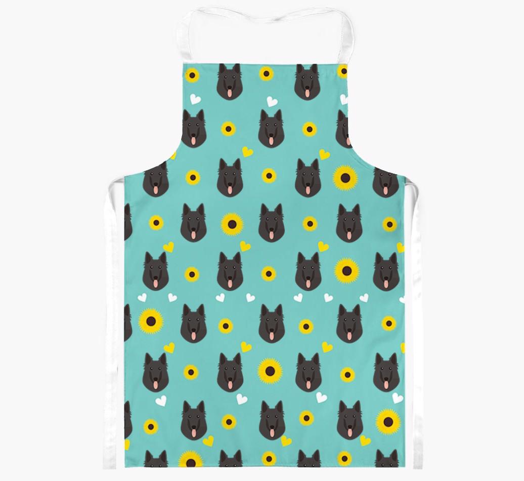 This apron has a delightful sunflower and heart pattern, and best of all - it's personalized with Belgian Shepherd's face too! This cute and colorful apron is sure to put a smile on every dog lover's face.