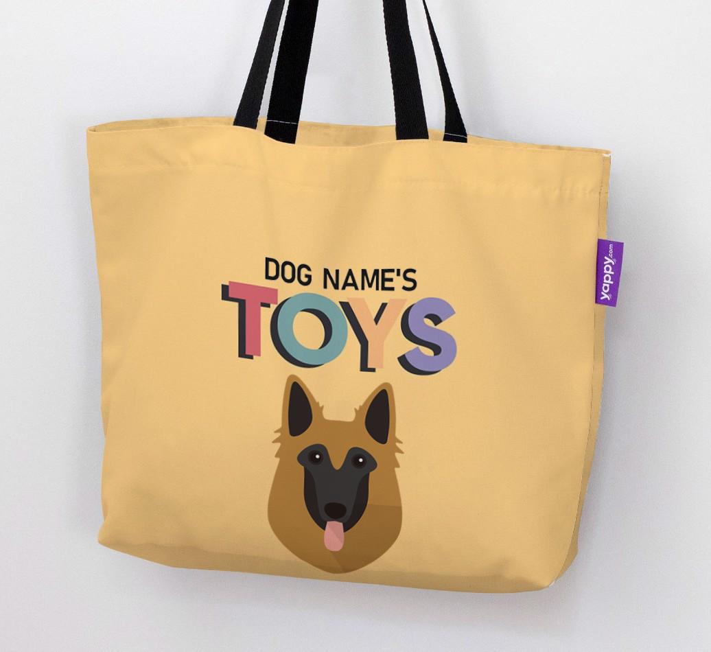 Don’t worry, we’ve got you covered with this pawsonalized canvas bag made for your Belgian Tervuren’s toy collection!