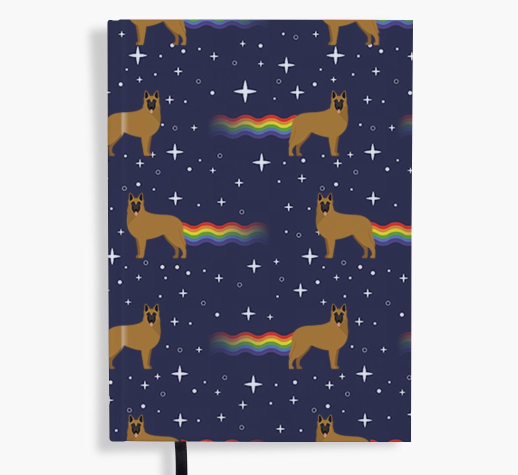 Featuring your cheeky Tervuren, lots of twinkling stars and available in a range of bold colors, this fun notebook is truly out of this world.