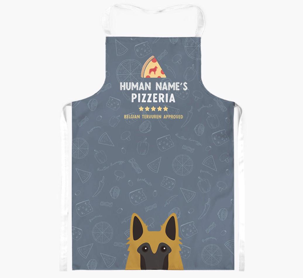 Featuring your furry friend's icon and lick of approval, plus your chosen human name, this apron is pawfect for anyone who considers themselves a pizza maestro in the kitchen. Available in a choice of 5 rustic colors, it'll make any Tervuren lover happy.