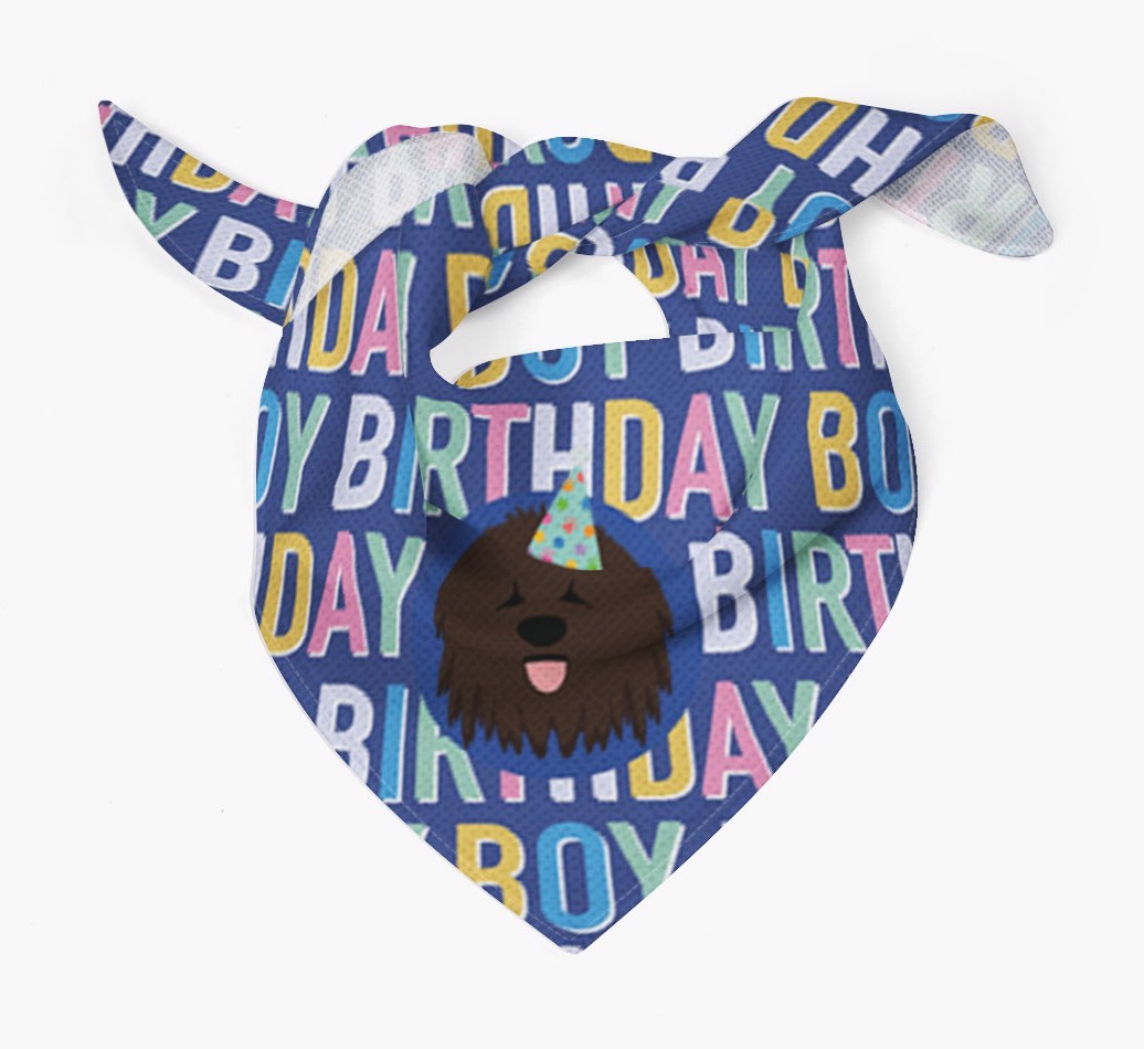 Featuring a colorful text pattern that reads 'birthay boy' and personalized with Bergamasco's cute icon (complete with a fun party hat), your Bergamasco will look simply pawgeous on their special day when they're wearing this bandana.