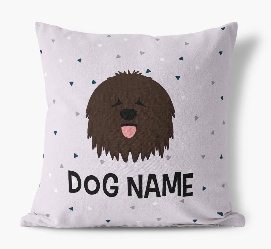 Featuring a stylish triangle pattern, this pillow is available in 5 wagnificent colors and is personalized just for Your Bergamasco, making is extra special.