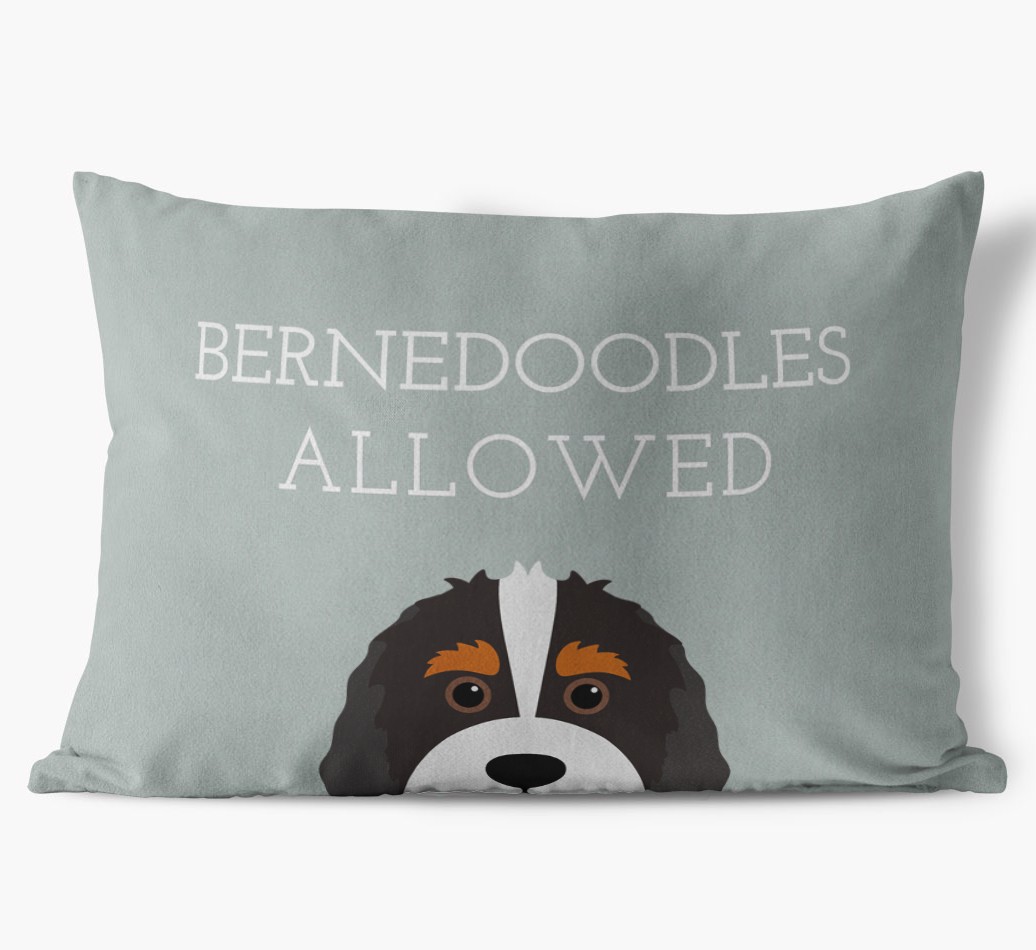 This exclusive, luxurious pillow is printed with the words ‘Bernedoodles Allowed’, which I’m sure Your Bernedoodle would definitely approve of.