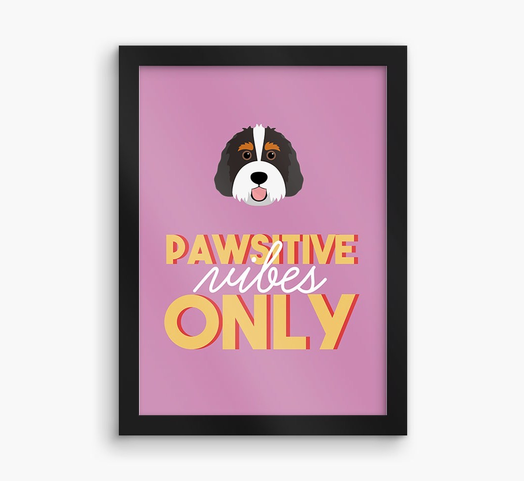 'Pawsitive Vibes Only' - Personalized Bernedoodle Framed Print