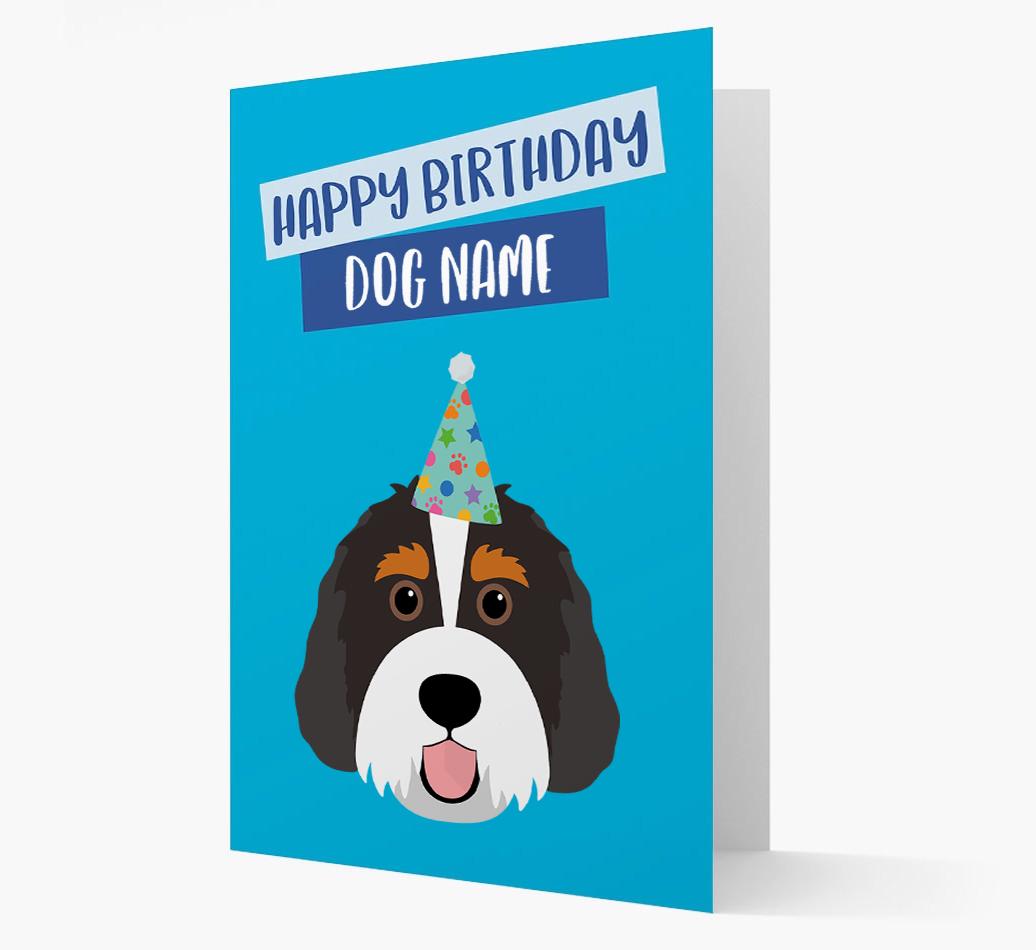 Why not wish Your Bernedoodle Happy Birthday in true pawty style with this party hat birthday card.