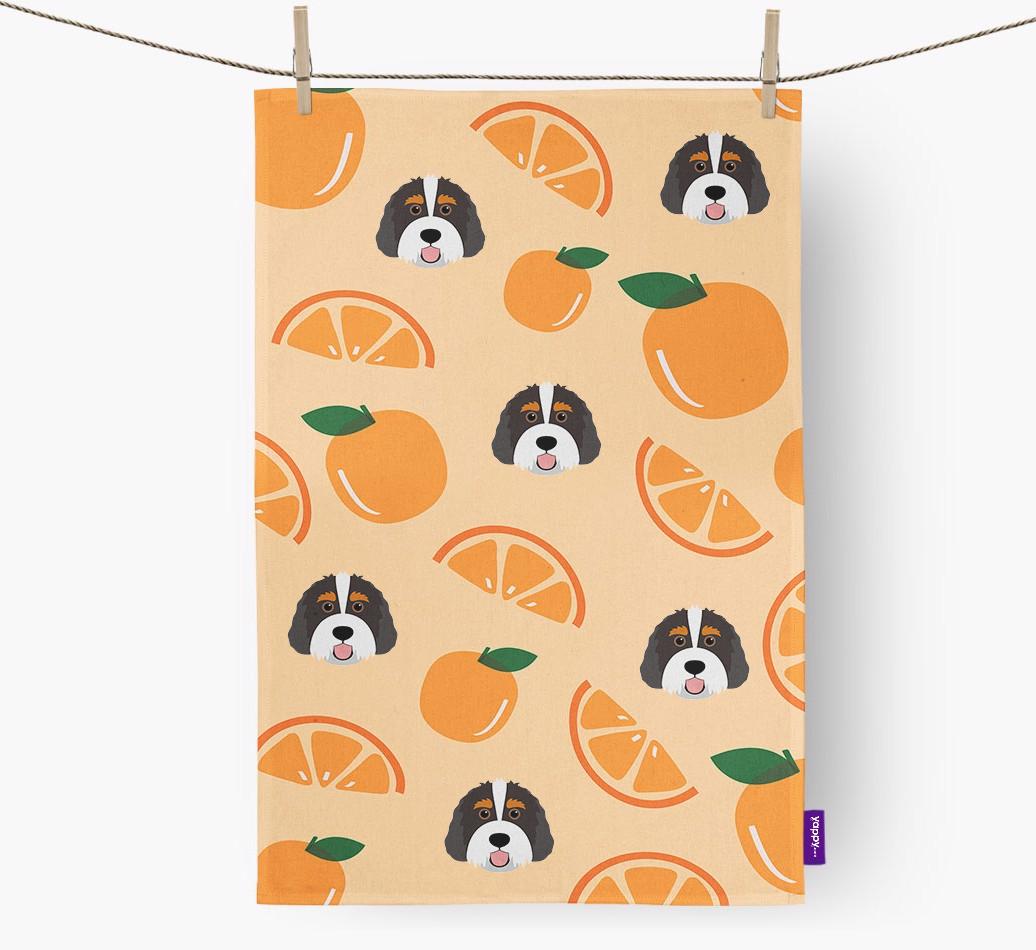 'Fruit Pattern' - Personalized Bernedoodle Dish Towel (Various Patterns)