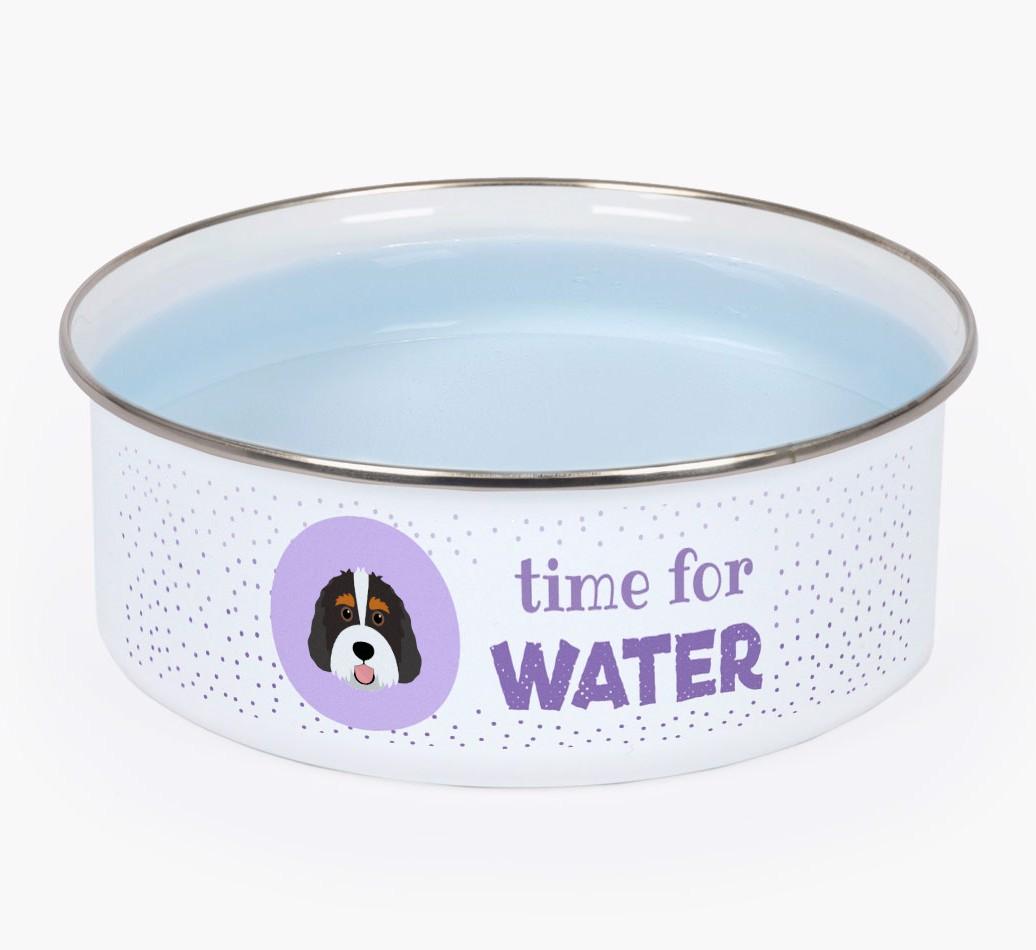 Time For Water: Personalized Enamel Bernedoodle Bowl