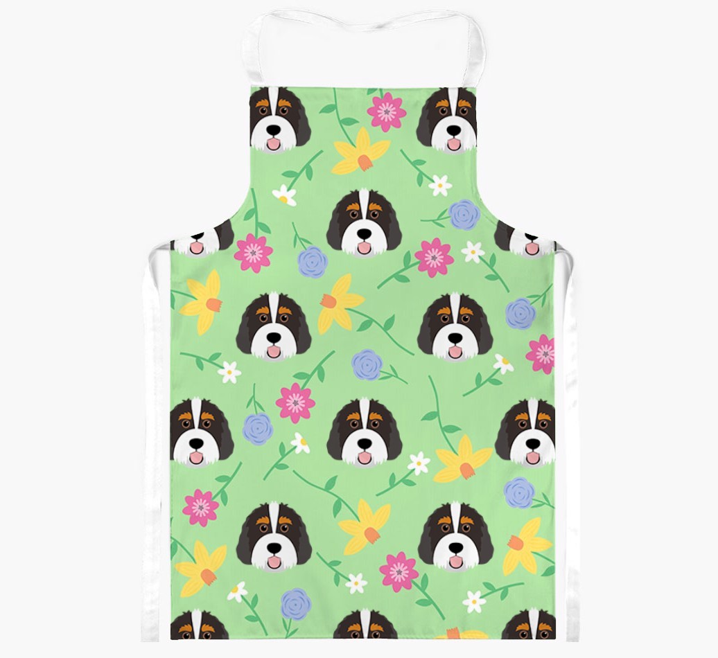 Featuring a gorgeous pattern of flowers and your dog's adorable face, this vibrant apron is bursting with canine charm and flowery fun - perfect for adding a splash of color to your kitchen.
