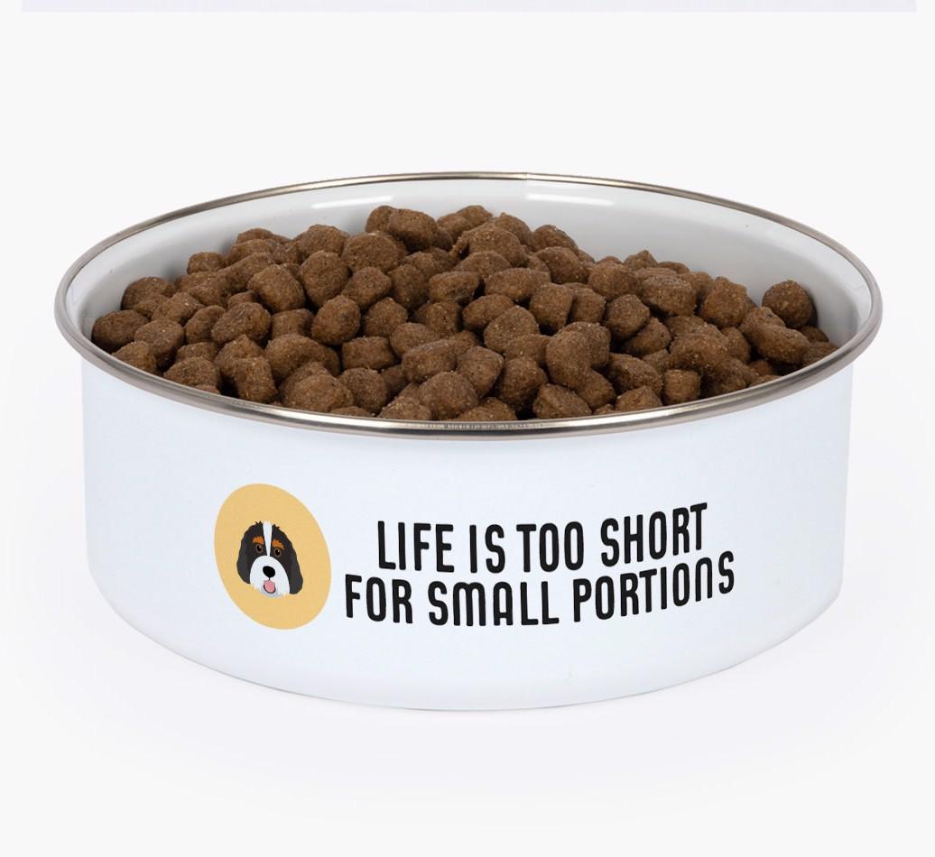Life Is Too Short: Personalized Enamel Bernedoodle Bowl