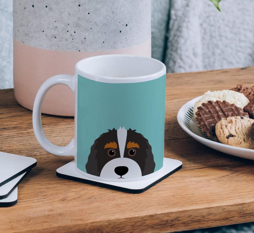 Enjoy the perfect coffee break with a mug that stars your furry friend! Featuring a Yappy.com exclusive Bernedoodle peeking icon, this pawgeous mug will look at home in any dog lover's kitchen and we're pretty sure Bernedoodle will be a fan too.