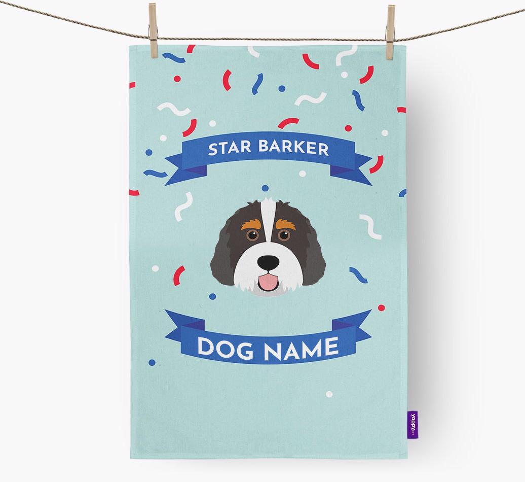 Now you can make sure your Bernedoodle’s new title is seen by everyone with this pawsome ‘Star Barker’ dish towel, pawsonalized especially for Bernedoodle.