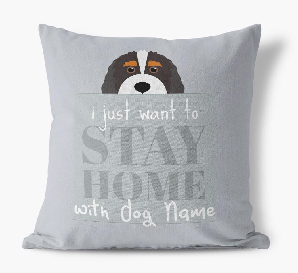 Stay Home: Personalized Bernedoodle Canvas Pillow