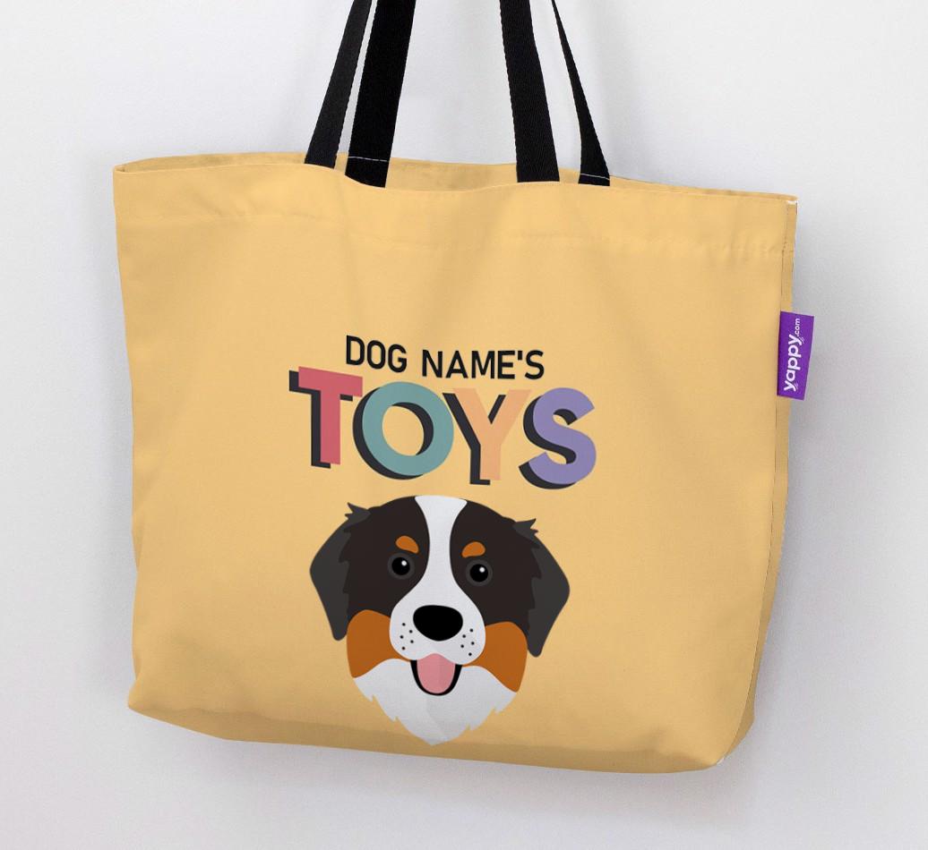 Don’t worry, we’ve got you covered with this pawsonalized canvas bag made for your Bernese Mountain Dog’s toy collection!
