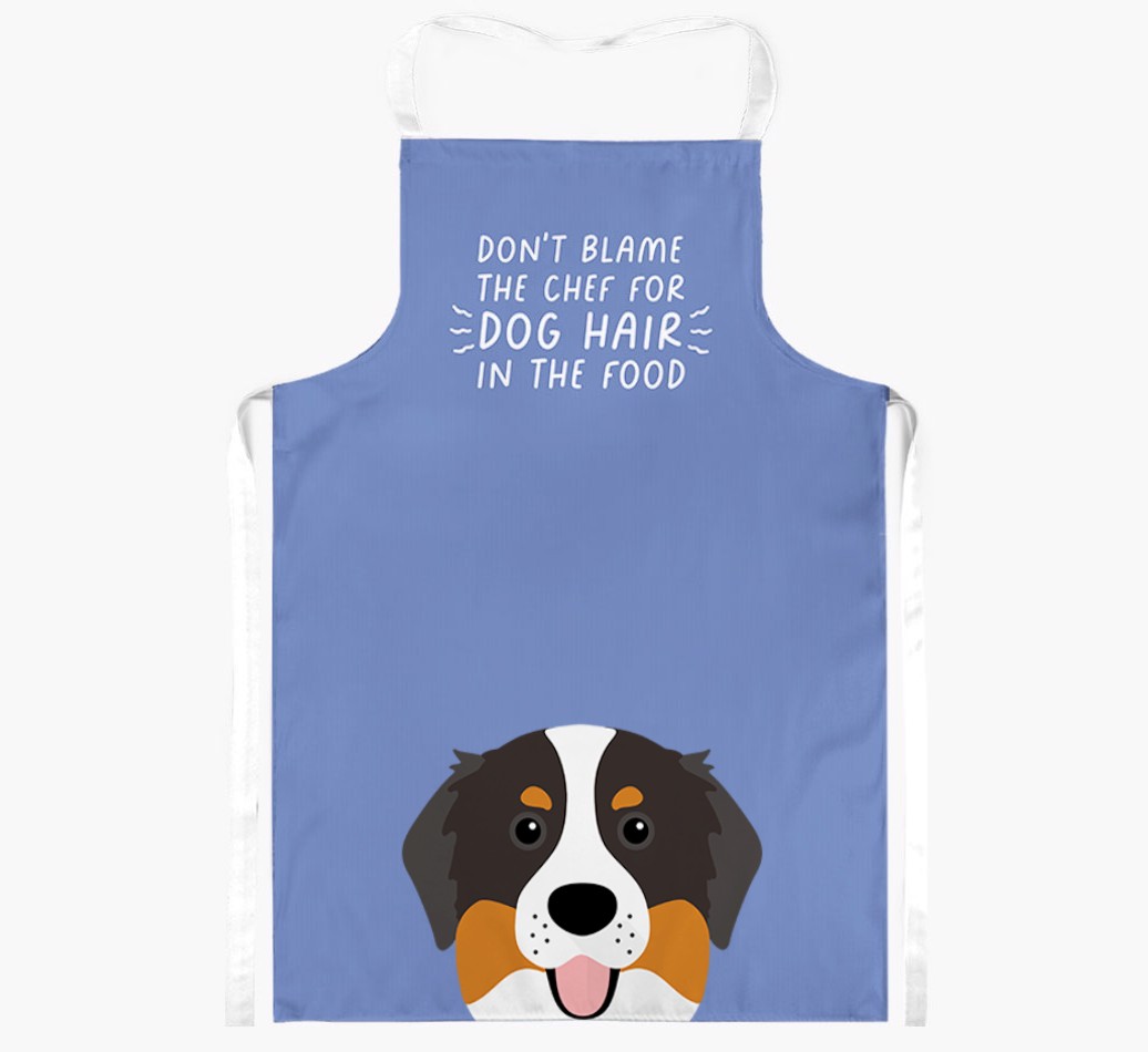 This funny apron will warn friends and family not to blame the chef for dog hairs in their food, they have Bernese Mountain Dog to thank for that!