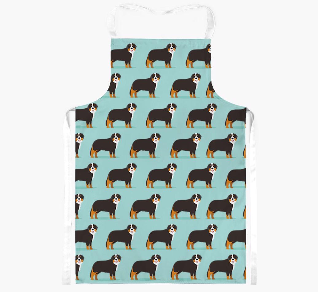 Personalized with row-upon-row of adorable Bernese Mountain Dog icons, this adorable apron is sure to make you smile while you're cooking up a storm.