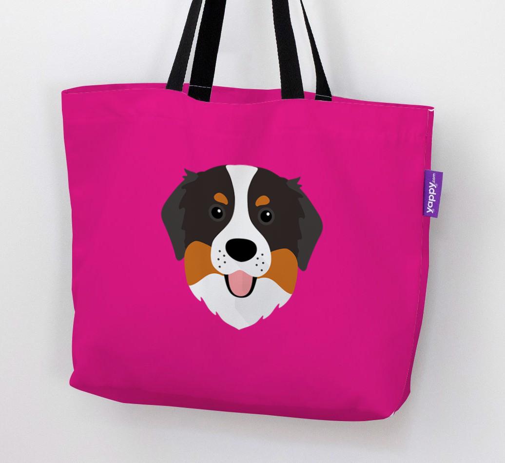 This Canvas Bag features an exclusive Bernese Mountain Dog icon printed on a bright, bold background.