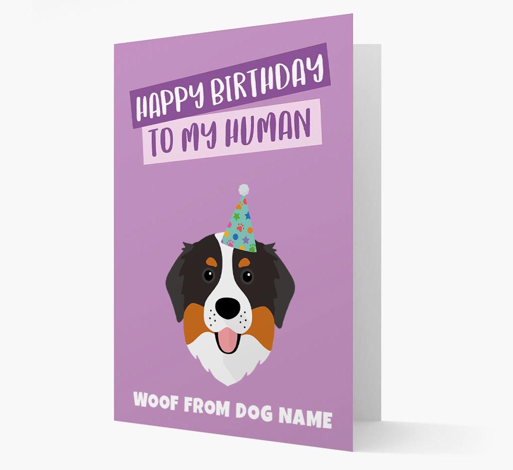 'Happy Birthday to My Human' - Personalized Bernese Mountain Dog Card