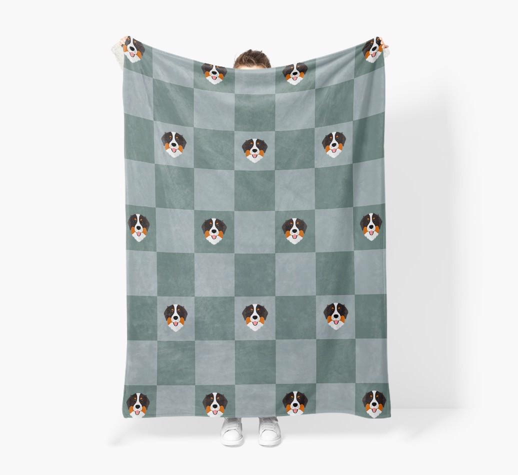 'Checkboard' - Personalized Bernese Mountain Dog Blanket: Premium Sherpa Fleece