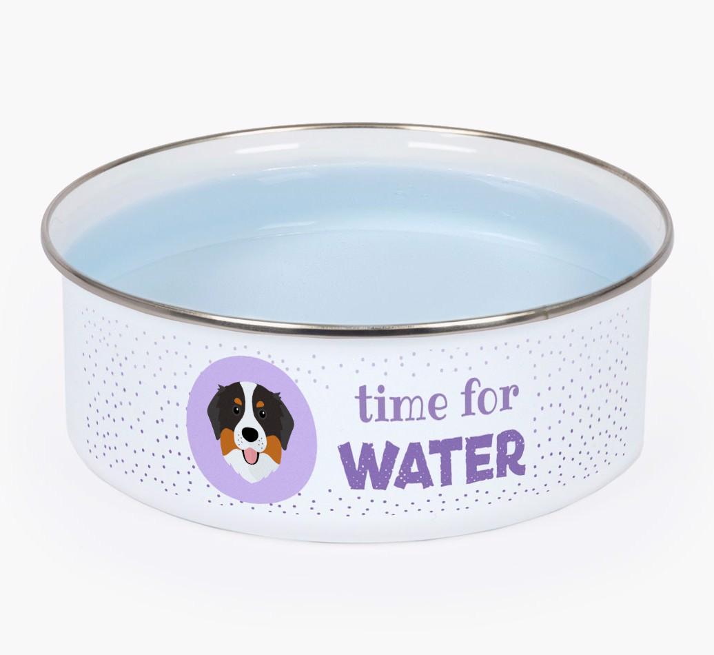 Time For Water: Personalized Enamel Bernese Mountain Dog Bowl