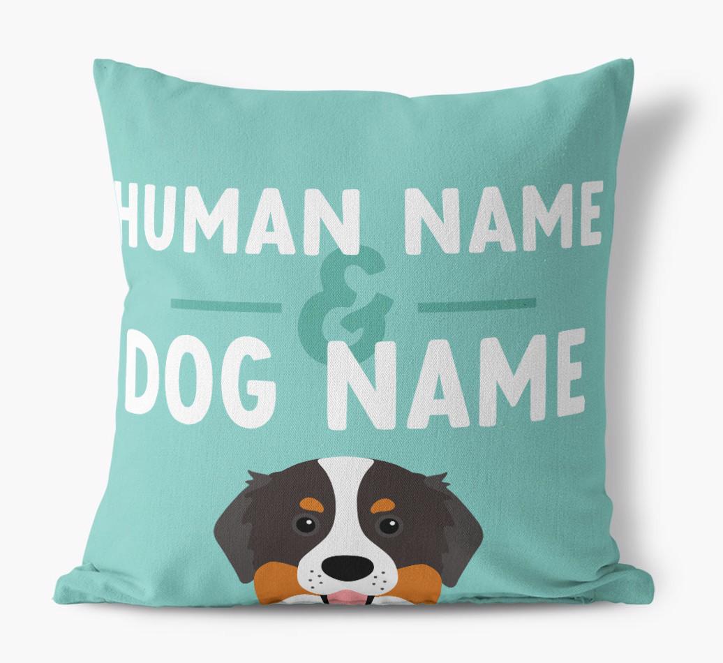 Human And Pet Name: Personalized Bernese Mountain Dog Canvas Pillow