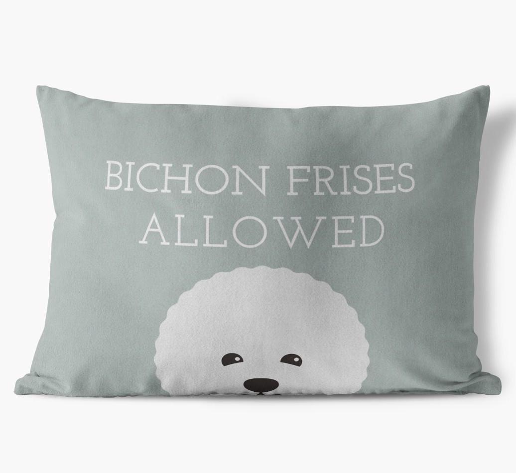 This exclusive, luxurious pillow is printed with the words ‘Bichon Frises Allowed’, which I’m sure Your Bichon Frise would definitely approve of.