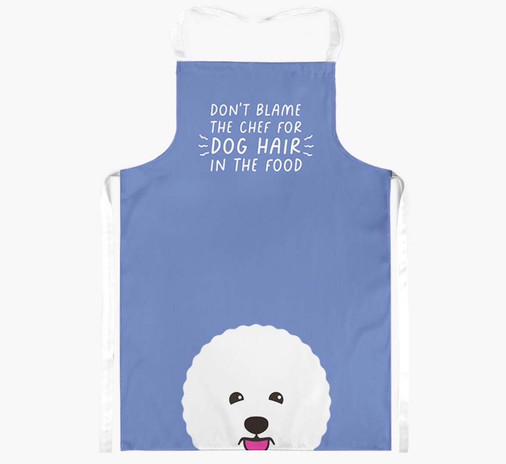 If you’re getting tired of people coming round and moaning about Bichon Frise hair in the food, you’re going to need this apron to remind them that you cannot be blamed, it’s Bichon Frise’s fault!