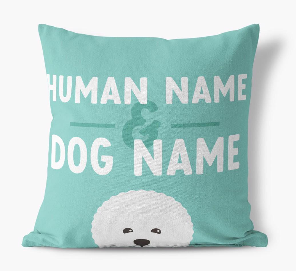 Human And Pet Name: Personalized Bichon Frise Canvas Pillow