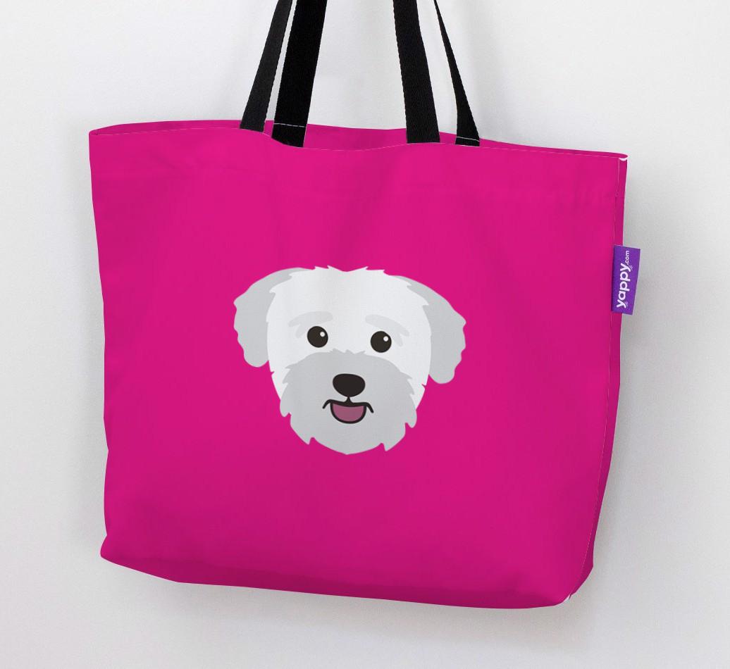 This Canvas Bag features an exclusive Bichon Yorkie icon printed on a bright, bold background.