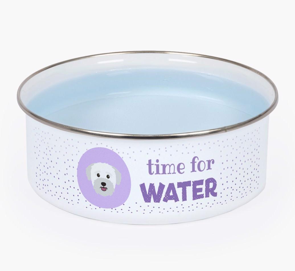Time For Water: Personalized Enamel Bichon Yorkie Bowl