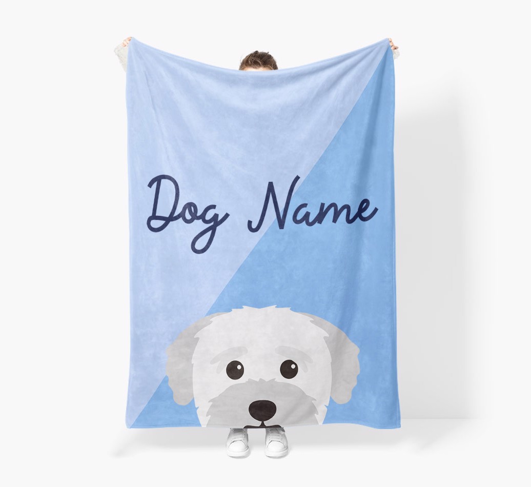 Peeking Name: Personalized Bichon Yorkie Premium Sherpa Fleece Blanket