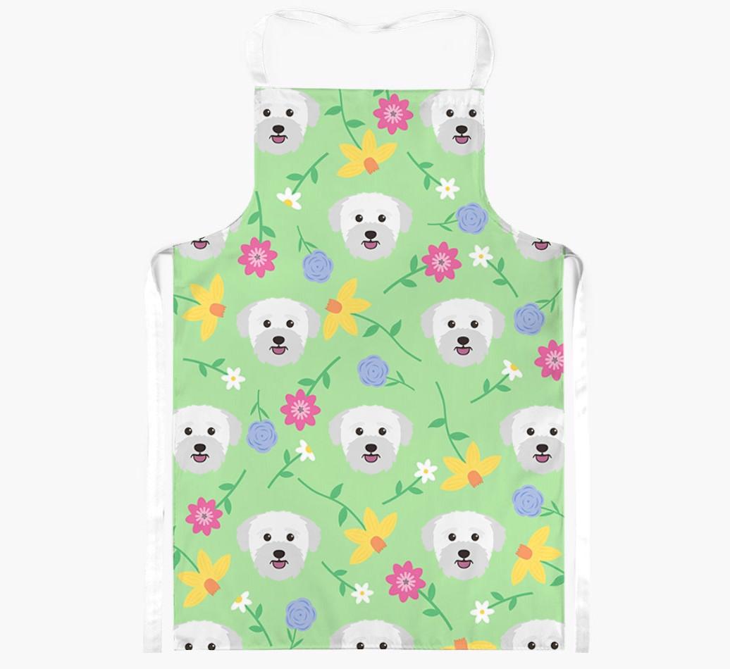 Featuring a gorgeous pattern of flowers and your dog's adorable face, this vibrant apron is bursting with canine charm and flowery fun - perfect for adding a splash of color to your kitchen.