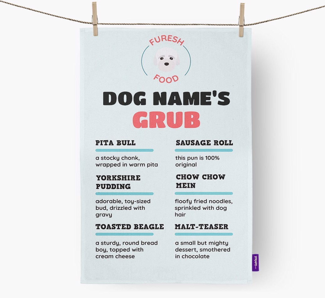 Personalized with Bich-poo's name and their pawsome icon, this dish towel adds canine charm to the kitchen and is destined to make you smile (even when it's time to do the dishes).