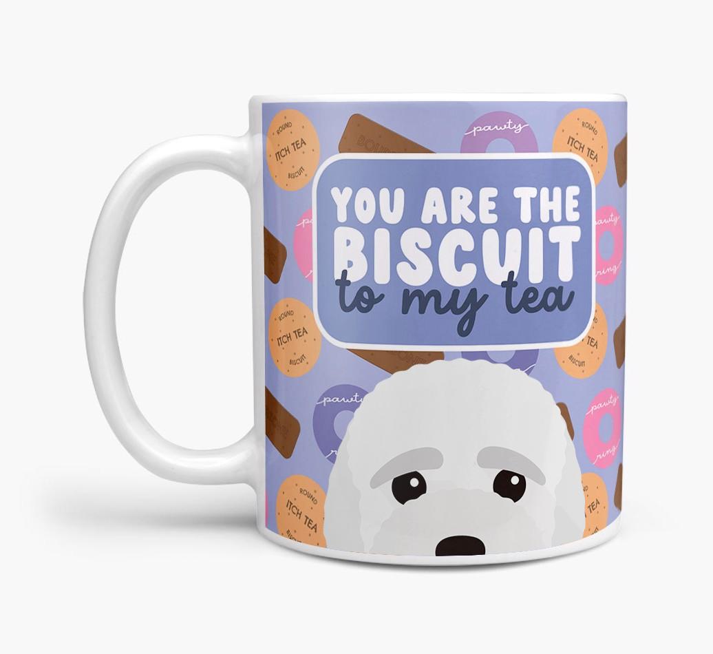 Featuring a cute biscuit motif paired with your Bich-poo's adorable face, this mug is bound to be a firm favorite in every household.