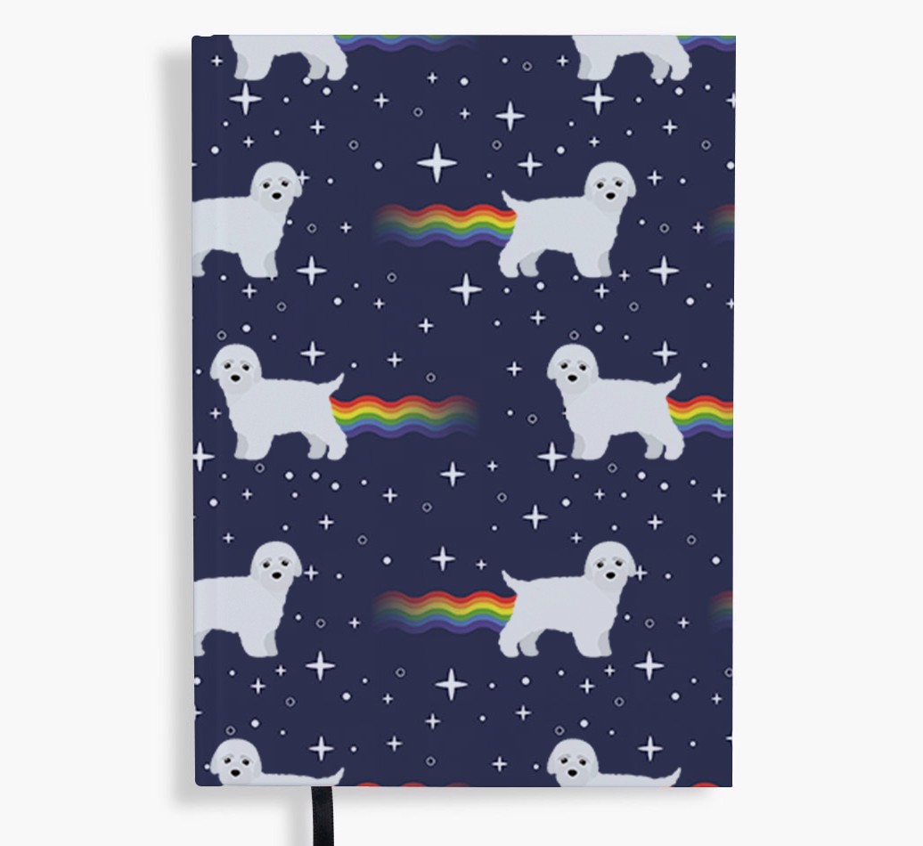 Featuring your cheeky Bich-poo, lots of twinkling stars and available in a range of bold colors, this fun notebook is truly out of this world.