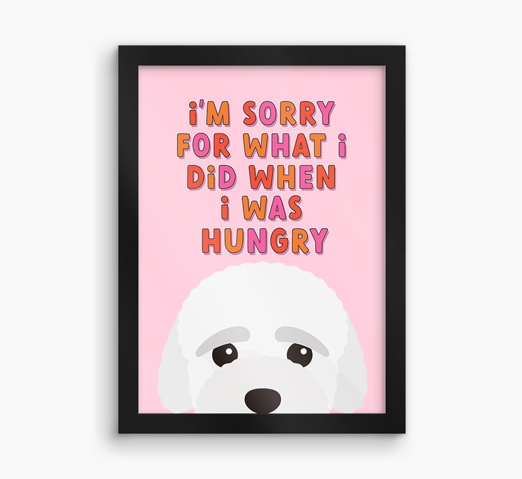 Does Bich-poo turn into a hangry hound when they're hungry? Can you relate? With this print in the home, at least you'll always be reminded of how sorry your Bich-poo is for their actions when they were hungry. Just look at this print and your Bich-poo's cute face and all will be fur-given... Hopefully.