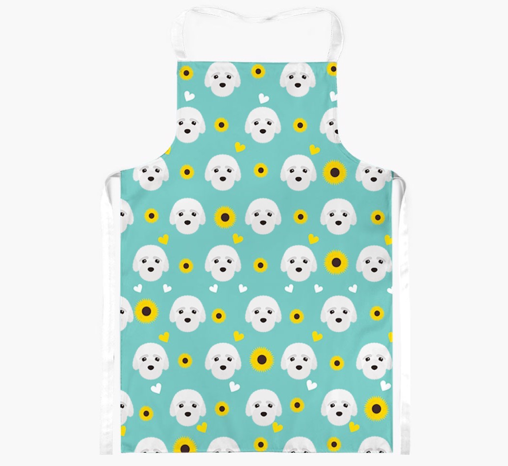 This apron has a delightful sunflower and heart pattern, and best of all - it's personalized with Bich-poo's face too! This cute and colorful apron is sure to put a smile on every dog lover's face.