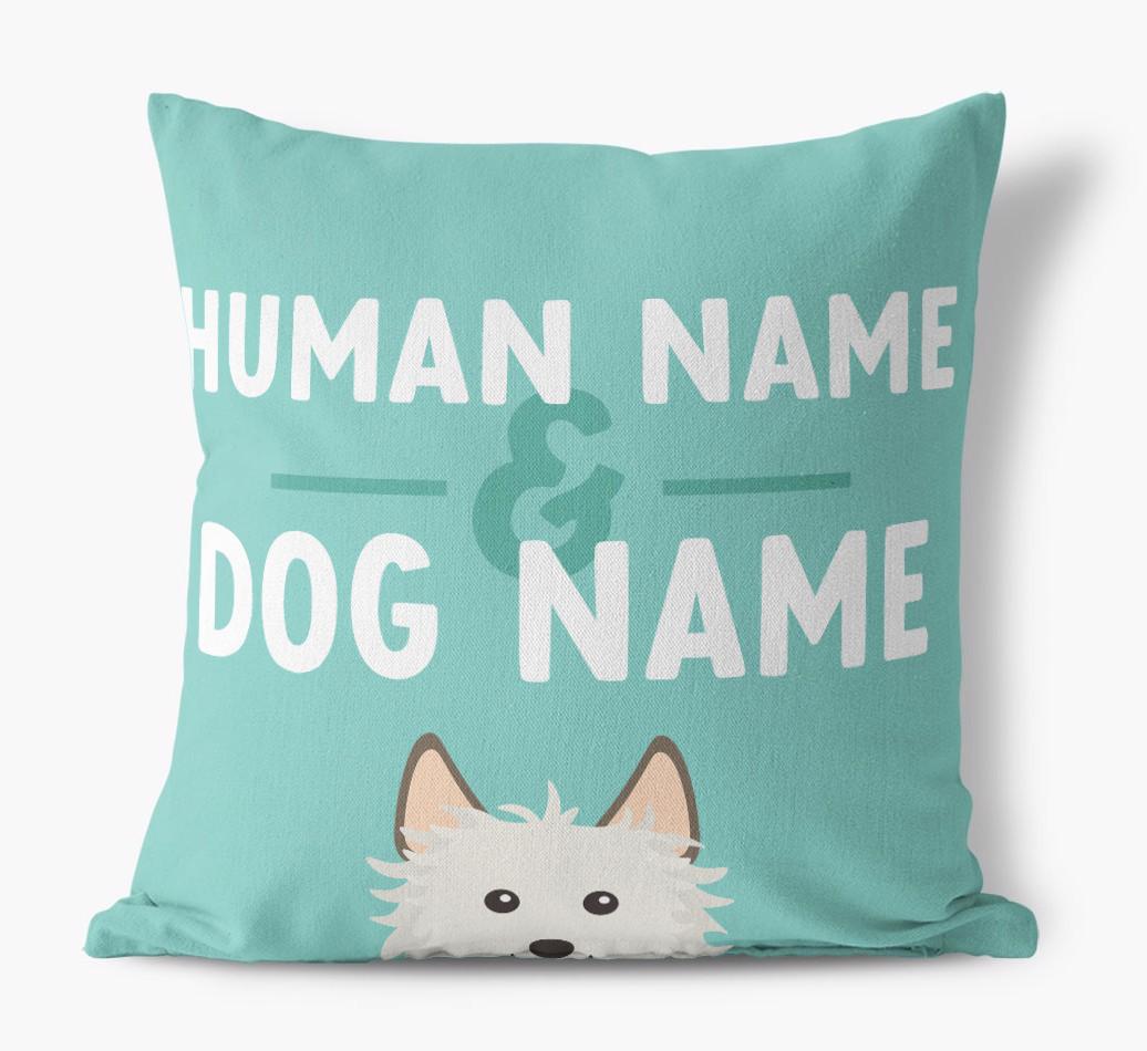 Human And Pet Name: Personalized Biewer Terrier Canvas Pillow
