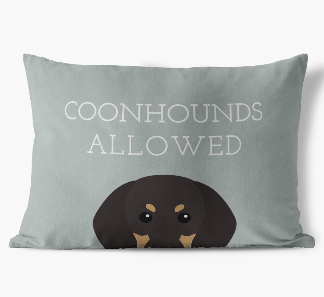 This exclusive, luxurious pillow is printed with the words ‘Coonhounds Allowed’, which I’m sure Your Coonhound would definitely approve of.