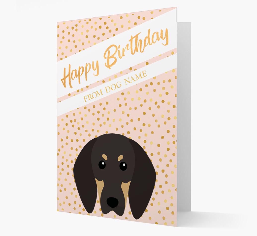 'Gold Detail' - Personalized Black and Tan Coonhound Birthday Card