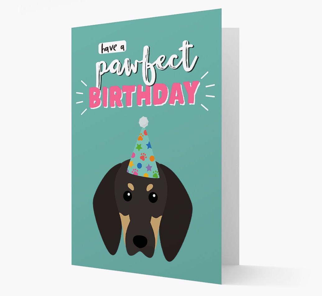 'Have A Pawfect Birthday' - Personalized Black and Tan Coonhound Card