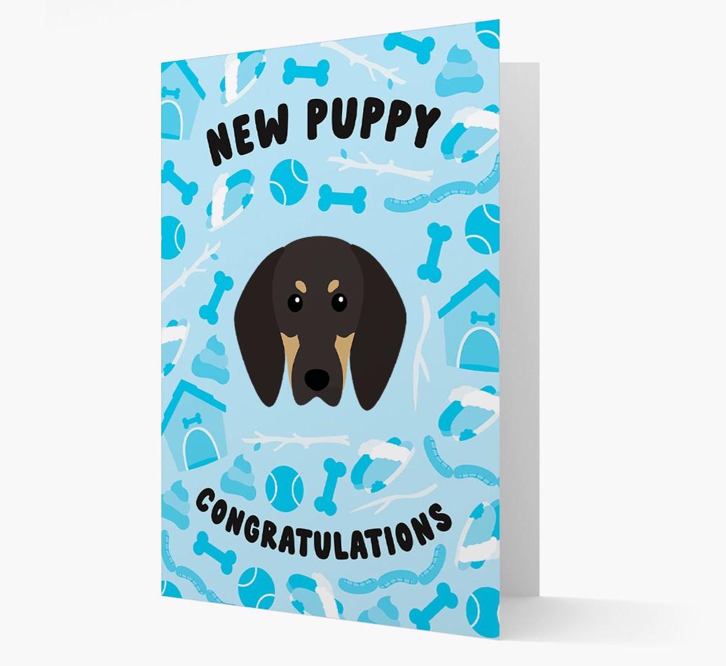 New Puppy, Congratulations: Personalized Black and Tan Coonhound Card