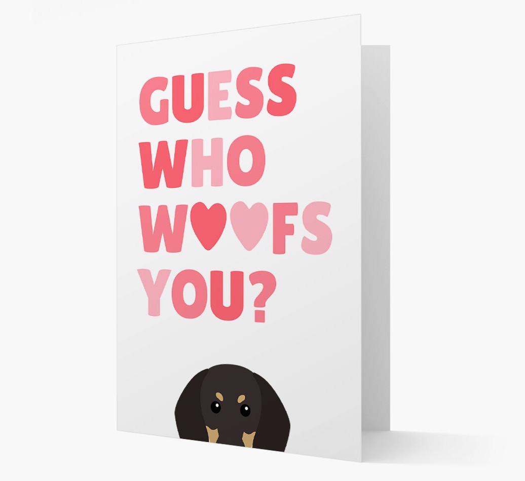 'Guess Who Woofs You?' - Personalized Card with Black and Tan Coonhound Icon